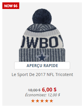 Nous avons récemment cliqué sur une publicité de Lids en ligne qui annonçait tuque et casquette des Cowboys de Dallas à respectivement 12$ et 18$.